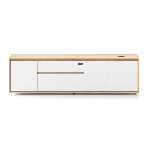 Executive desk left hand side cabinet for Executive Boost+ and Halo+ Workstations. Natural Oak carcass and Natural White drawer and door fronts.