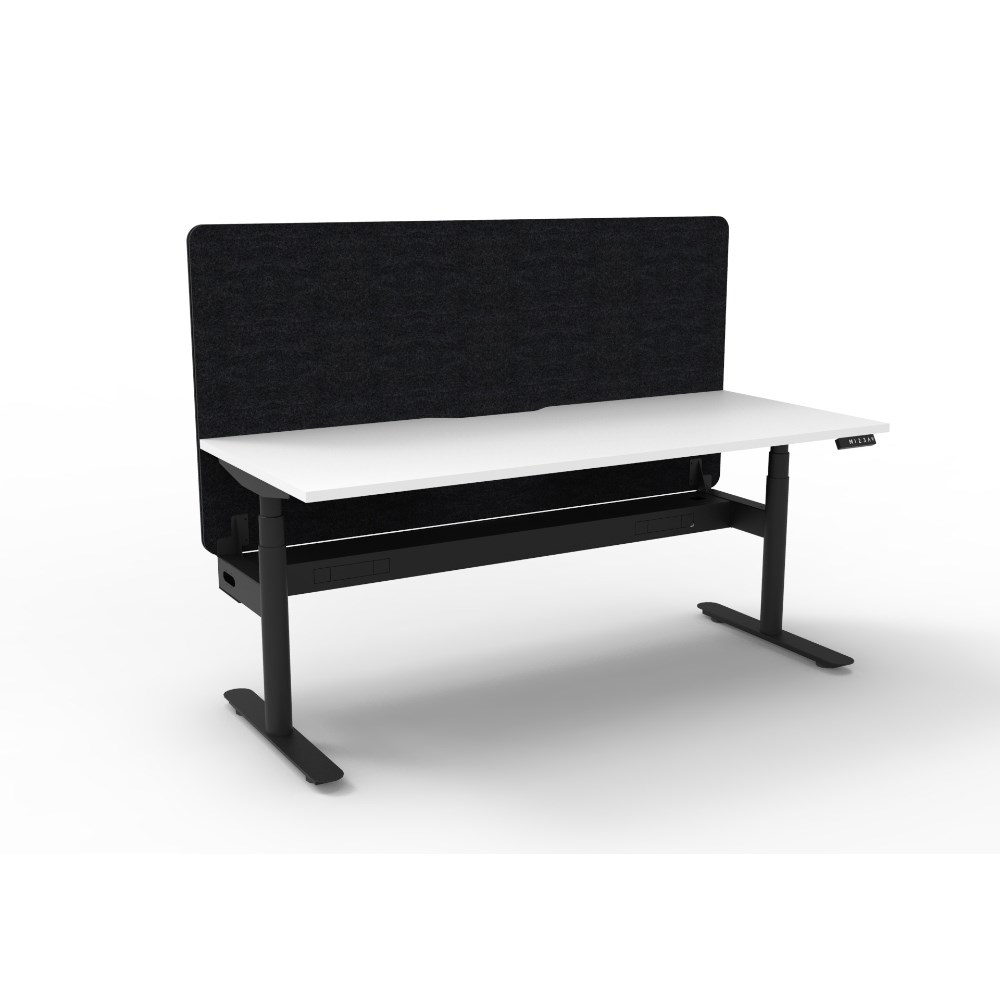 Rapidline Halo+ Single Sided Workstation + Black Eco Screen +Tray 1500Wx620-1270mmH Wht/Wh