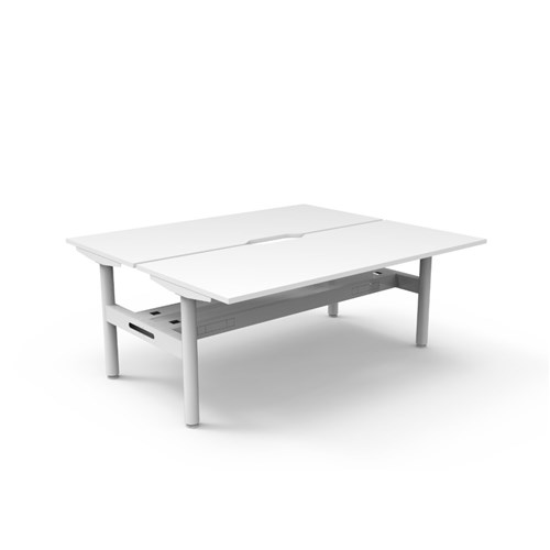 Natural White top White Satin frame. Double sided workstation with cable tray.