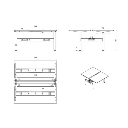 Desk Per User Dimensions: 1500W x 750D x 730mmH. Height With Screen: 1330mm.