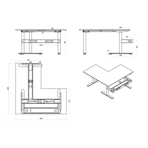 Desk Dimensions: 1500W x 1500W x 750D x 730mmH. Height With Screen: 1330mm.