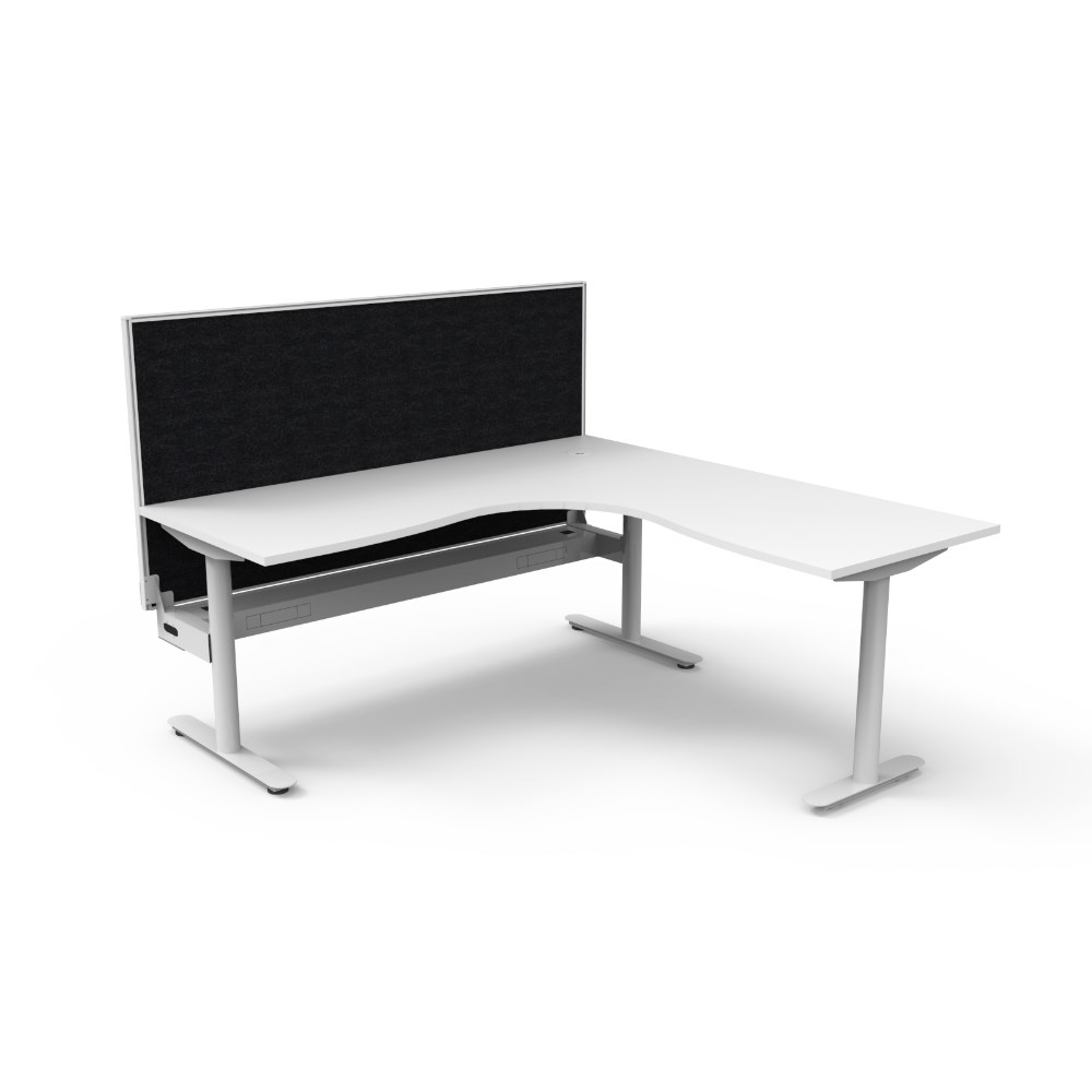 Rapidline Halo Static Corner Workstation + Screen + Tray 1800/1800W x 1330mmH White/Blk
