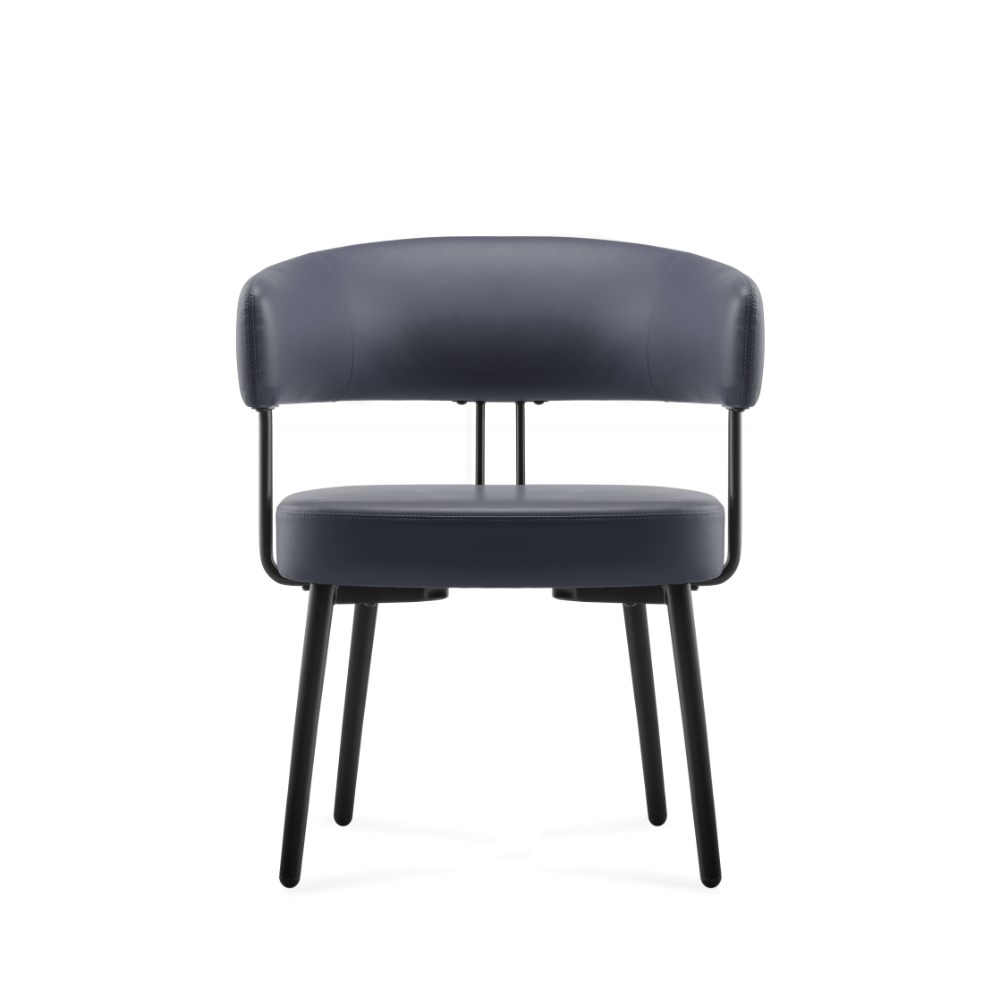 Robust steel 4 leg frame finished in black powder coat French Navy PU leather seat.
