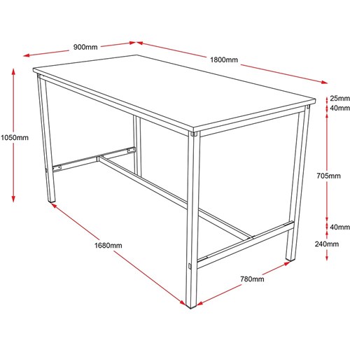 Rapidline High Bar Table 1050Hx900Wx1800mmD Cherry Top Black Frame