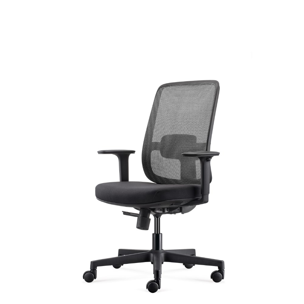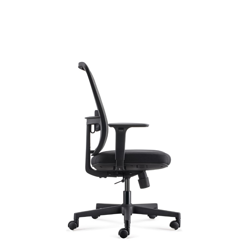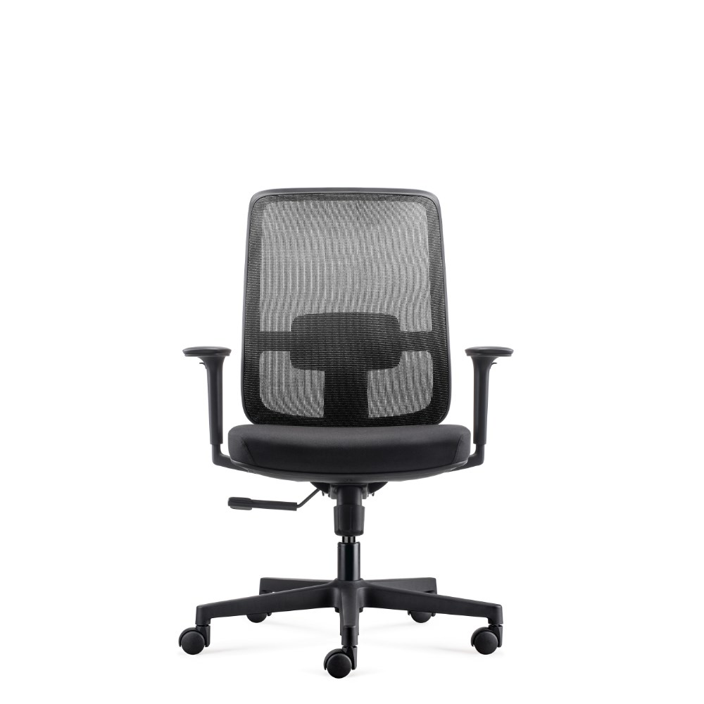Lotto medium back operator chair. Medium back. Black with grey backed mesh and black fabric seat. Black PP and fiberglass mix frame.
