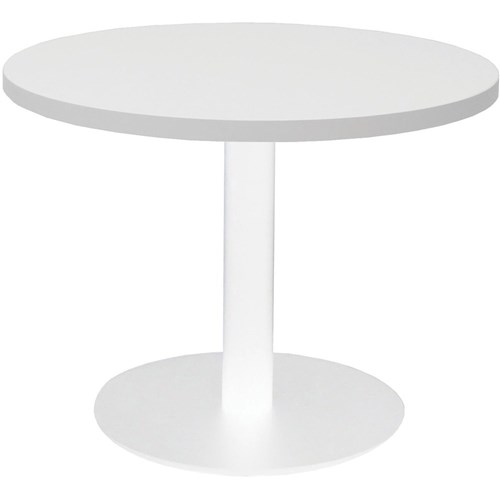 RAPIDLINE CIRCULAR COFFEE TABLE 600mm Dia Flat Disc Base Natural White with White Satin