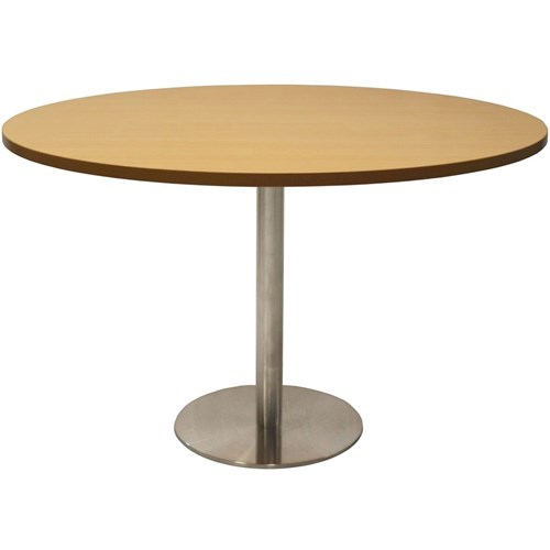 RAPIDLINE CIRCULAR MEETING TABLE 600mm Dia DISC BASE Beech Stainless Steel