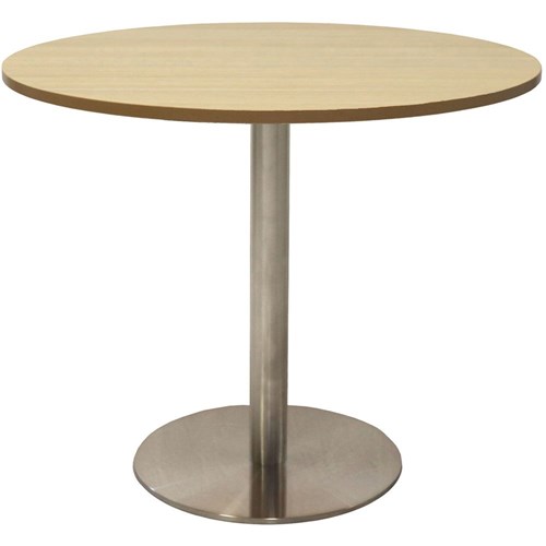 RAPIDLINE CIRCULAR MEETING TABLE 600mm Dia DISC BASE Beech Stainless Steel