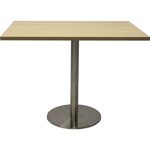 RAPIDLINE SQUARE TOP TABLE 900x900mm CIRCULAR BASE Natural Oak Stainless Steel