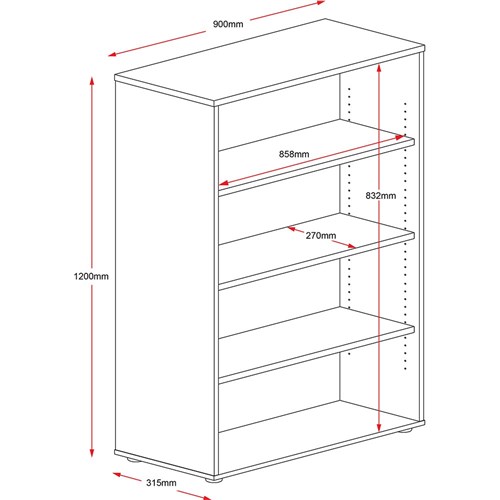 Rapid Worker Bookcase 900Wx315Dx1200H Includes 3 Shelves Cherry and Ironstone