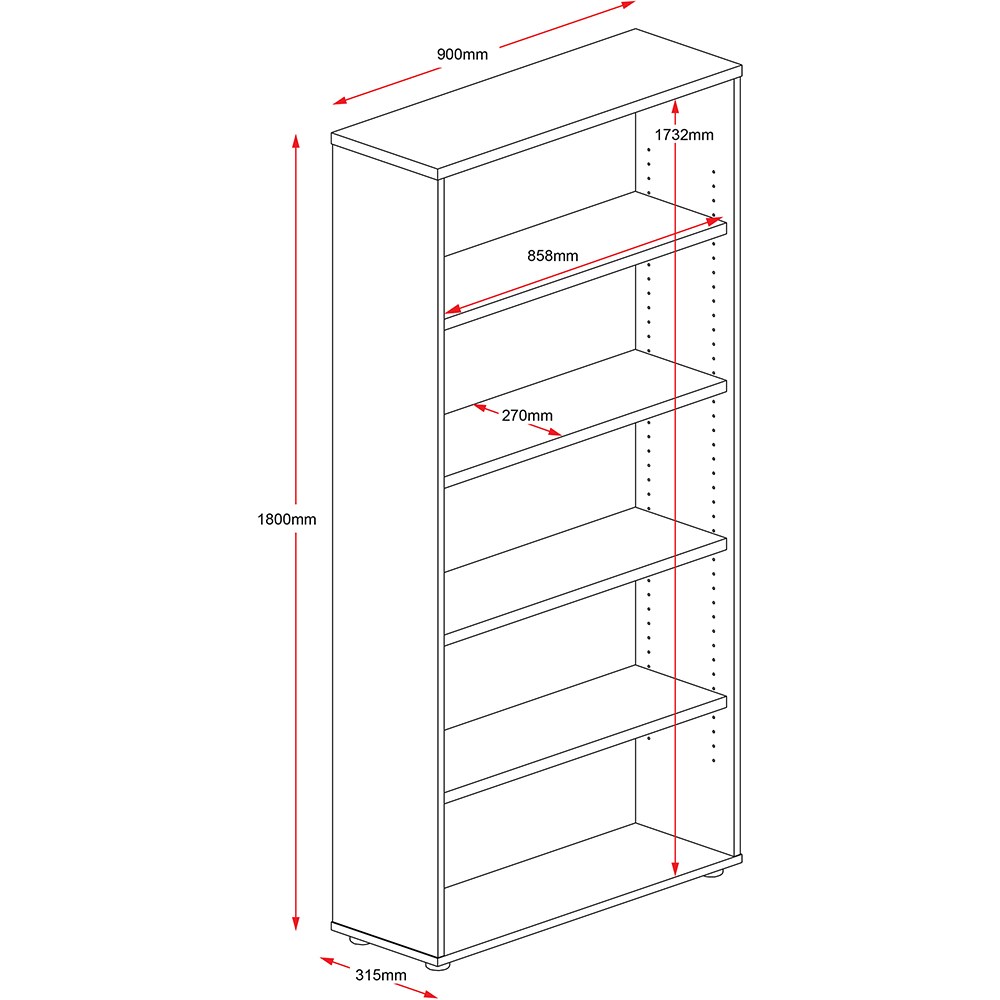 Rapidline Worker Bookcase 4 Shelves 1800Hx900Wx315mmD Natural Oak and Ironstone
