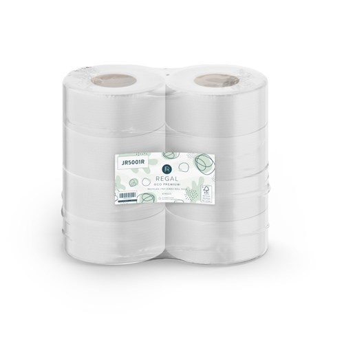 Regal Eco Premium Recycled Jumbo Toilet Paper Rolls 1 Ply 500m Pack of 8