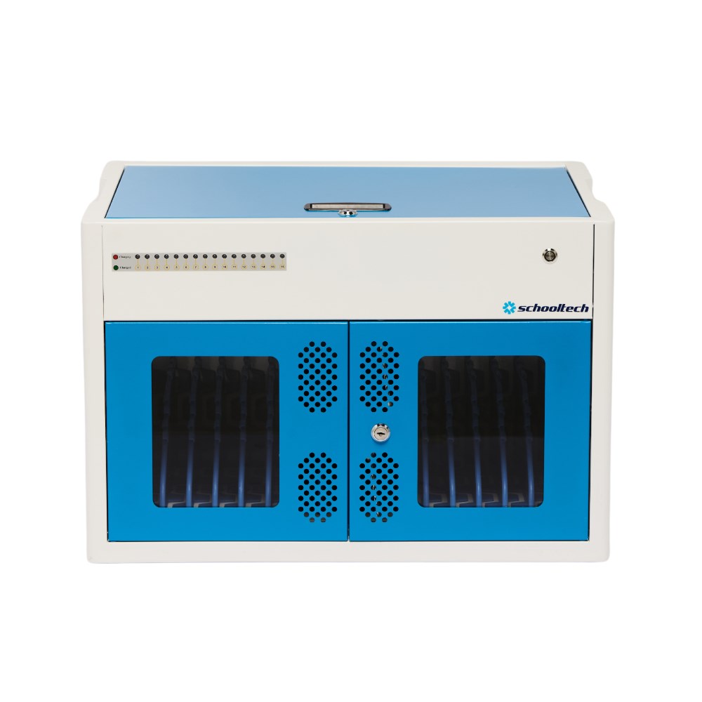 SchoolTech 16 Device Vertical USB-C Charging Station Cabinet For Notebooks And Devices Blue