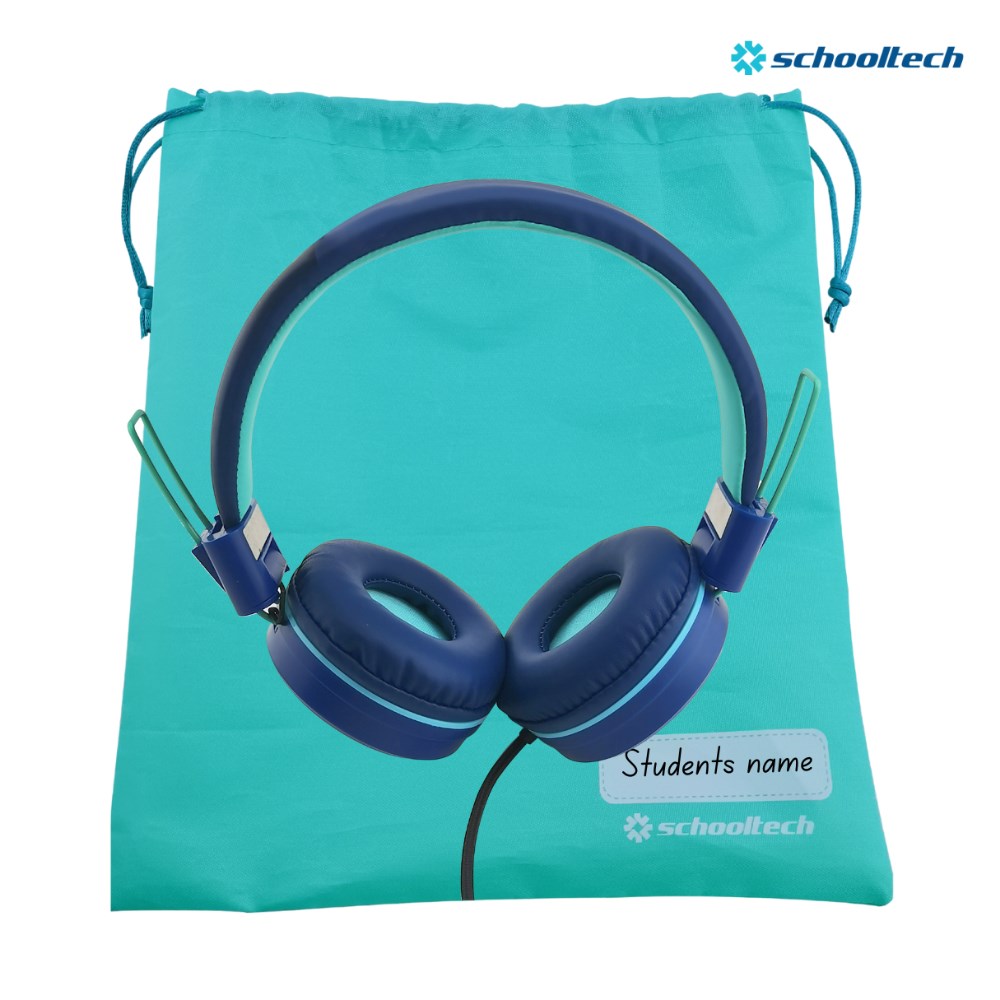 SchoolTech Extra Sturdy Headphones With Microphone 3.5mm Jack Teal/Navy Pack 100