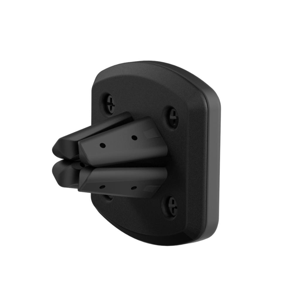 Safely, quickly secure mobile devices to any vehicle vent type: horizontal, vertical, angled or circular.