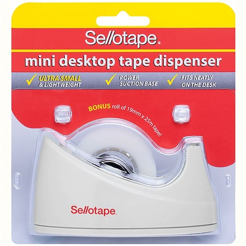 Sellotape Tape Dispenser 19mmx25m Mini Desktop Black or White w Bonus Tape