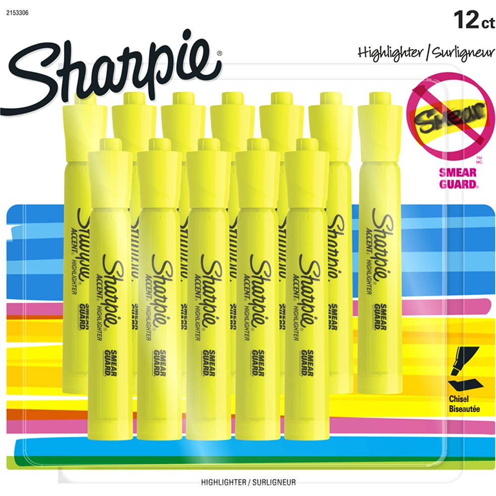 Sharpie Tank Highlighters with wide barrel and large ink supply that delivers dependable highlighting.
