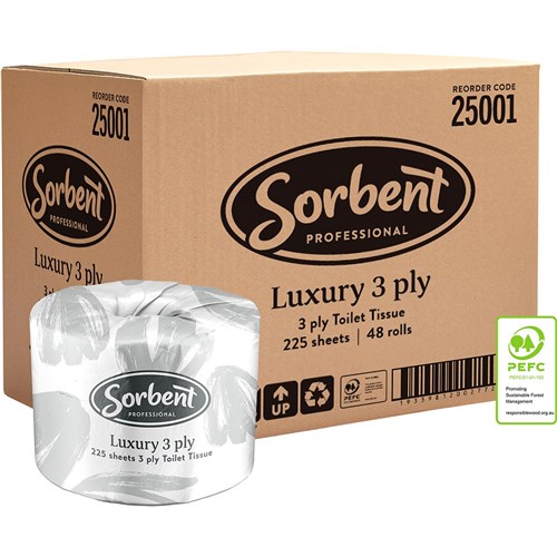 Sorbent Professional Luxury Toilet Tissue Rolls 3 Ply 225 Sheets Carton of 48