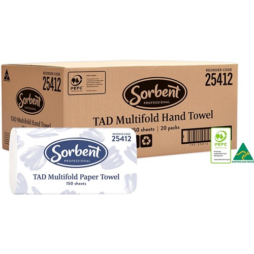Sorbent Professional TAD hand towels are ideal and cost-effective solution for high traffic washroom areas.