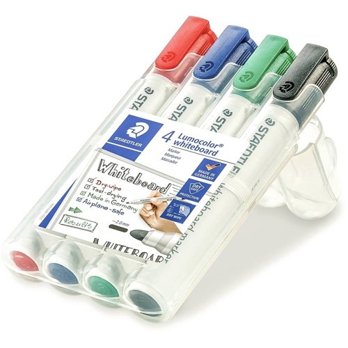 STAEDTLER 351 WHITEBOARD MARKR Chisel Point Wlt4 Assorted Wallet of 4 - Hard Case