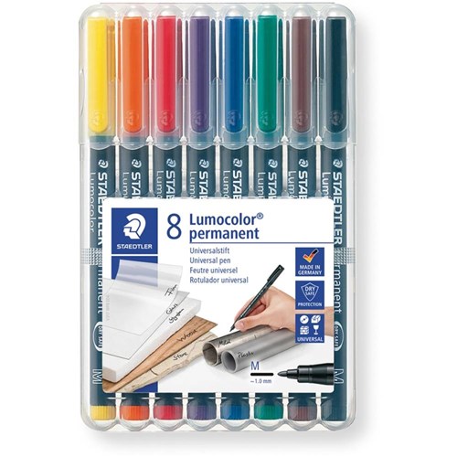 Ideal for writing on smooth and glossy surfaces such as film, glass, ceramic, plastic, metal, paper, courier bags, wood, fabric or CDs, DVDs & OHPs.