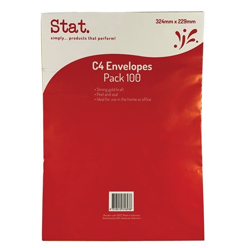 Stat Peel And Seal Envelope C4 Kraft - Gold Pack of 100