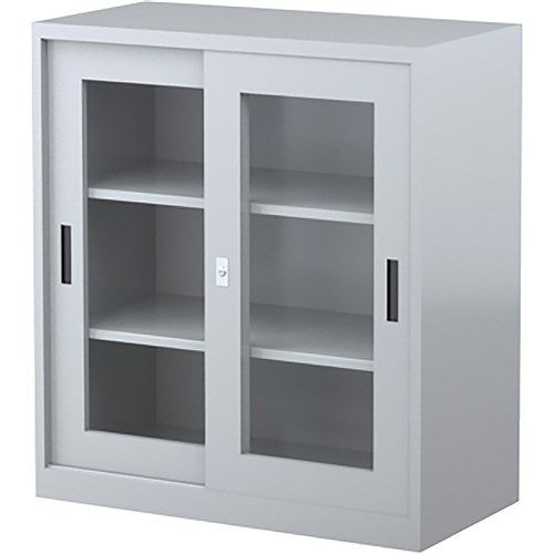 Steelco Sliding Glass Door Cabinet 2 Shelves 914W x 465D x 1015mmH Graphite Ripple