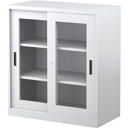 Steelco Sliding Glass Door Cabinet 2 Shelves 914W x 465D x 1015mmH Silver Grey