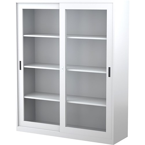 Steelco Sliding Glass Door Cabinet 3 Shelves 1500W x 465D x 1830mmH Silver Grey