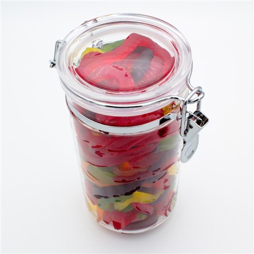Air-tight lid with chrome clip.