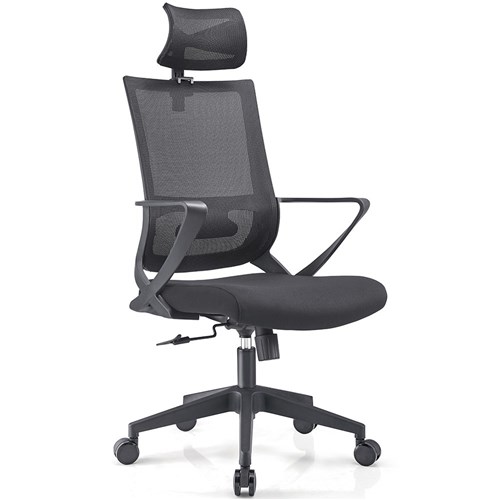 Sylex Clinton High Back Office Chair With Arms And Adjustable Headrest Mesh Back Black