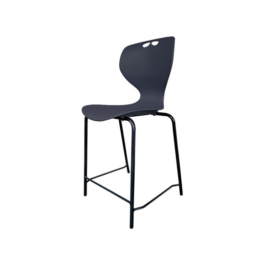 Sylex Roswell 4 Leg Stool 750mmH Plastic Charcoal Seat Steel Black Frame