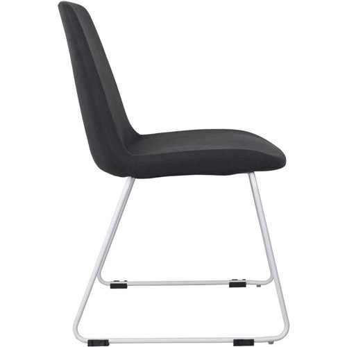 Tempo Visitor Chair White Sled Base Black Padded Fabric Upholstery