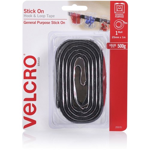 VELCRO BRAND HOOK & LOOP Tape Stick On 25Mm X 1M Black