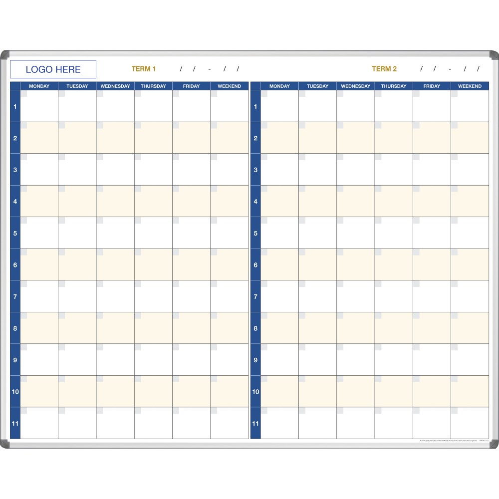 Visionchart Magnetic Stacked 2 Term School Planner Whiteboard 1500 x 1200mm