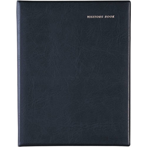 Wiro bound corporate visitors book with padded PVC cover, 64 sheets and pen loop.