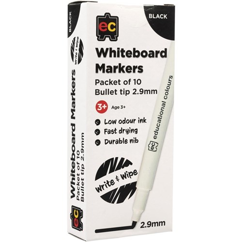 EC Whiteboard Marker Pack 10 Thick BLACK 4.4mm Bullet Tip