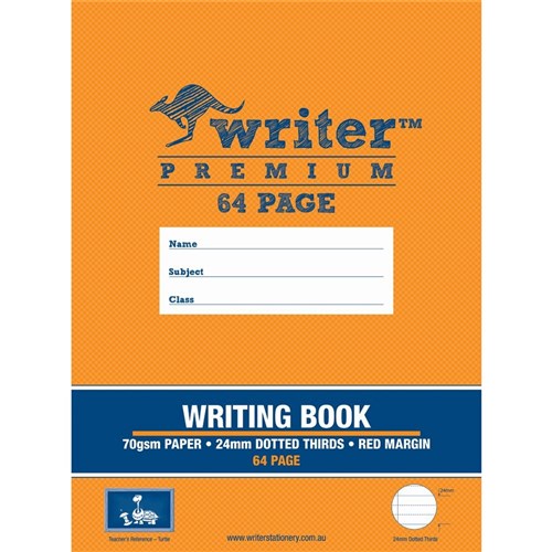 Writer Premium Writing Books feature heavy duty covers, high quality white 70gsm paper with blue Dotted Thirds ruled lines and a red margin