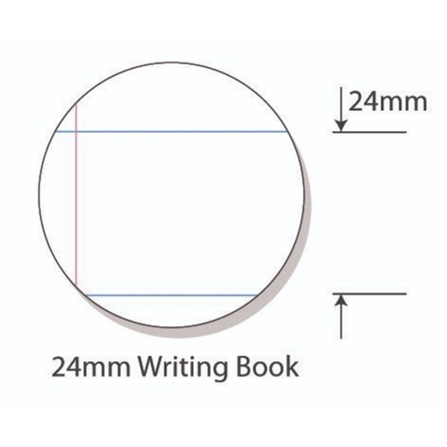 Features heavy duty board covers, high quality white 70gsm paper with ruled lines and a red margin.