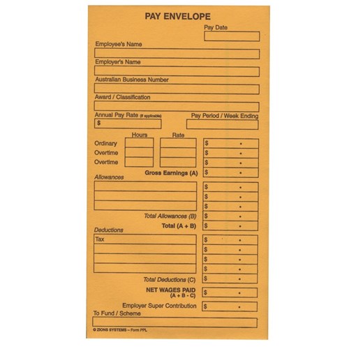 Zions PPL Printed Pay Envelope 165x90mm Pack 50