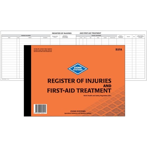 ZIONS REGISTER OF INJURIES BOOKS RIFA NSW