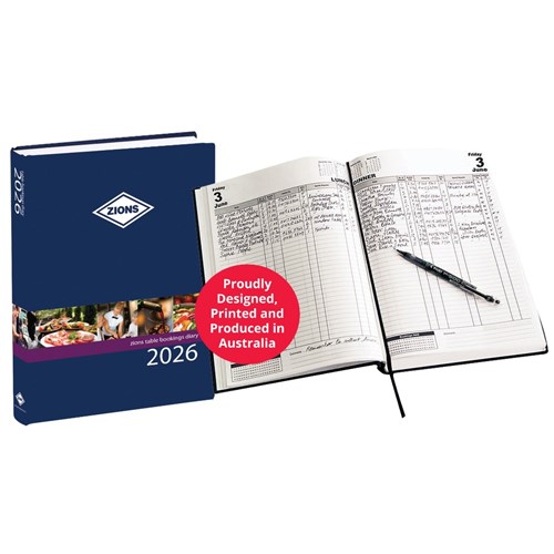 Zions Table Bookings Diary is proudly designed, printed and produced in Australia from sustainable sources.