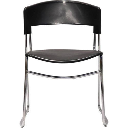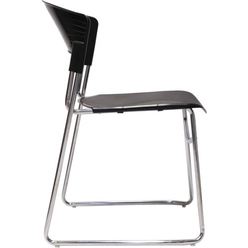 Zola Stackable Meeting Chair Chrome Sled Base Black Polypropylene Seat and Back